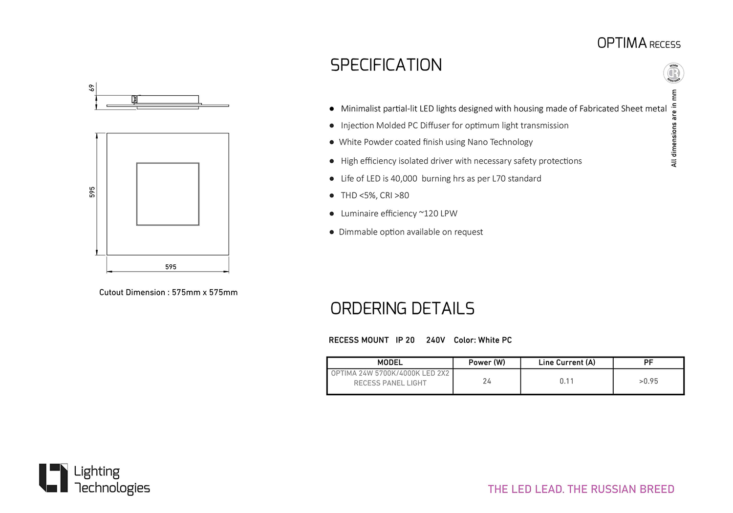 OPTIMA is a Unique, Slim Partial-lit Recessed 2ftx2ft panel LED light which offers excellent energy saving and maintenance-free operation.
