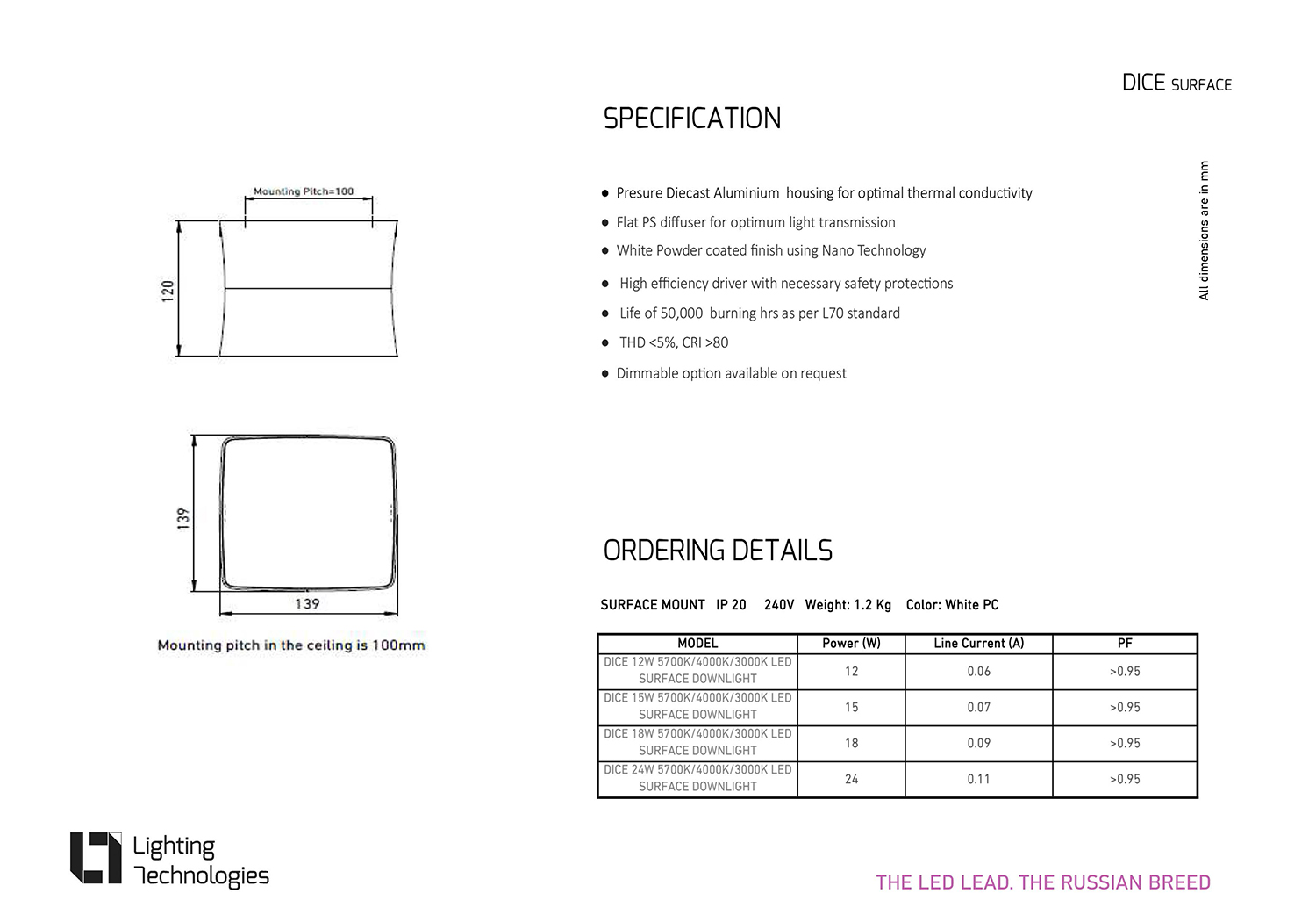 Dice is a Special Square shaped LED Diffused Downlight for uniform Directional lighting of your commercial space