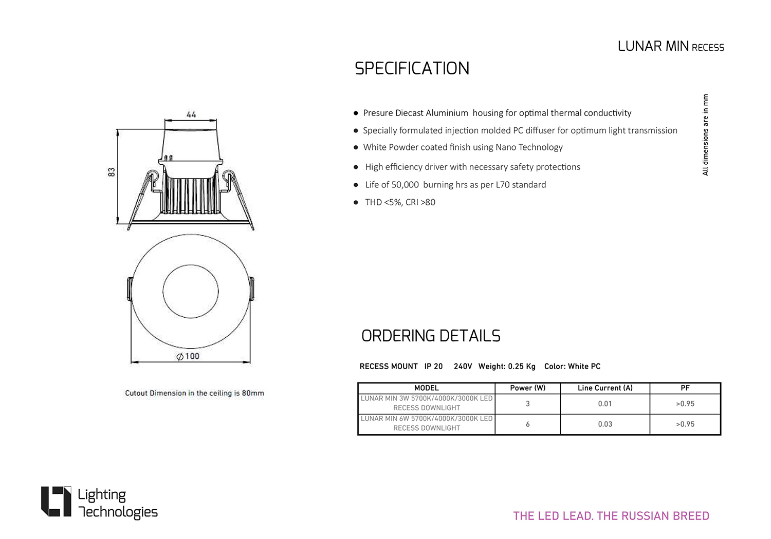 Lunar is uniquely designed LED Recessed Downlight with combined maximum visual comfort and optimum light output ratio