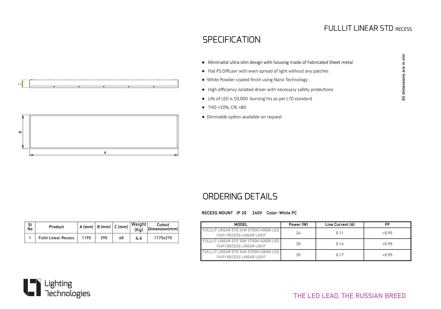 FULLLIT CR is a Ultra slim functional recessed 1ftx4ft LED light best suited for work place which demands more light at low investment costs