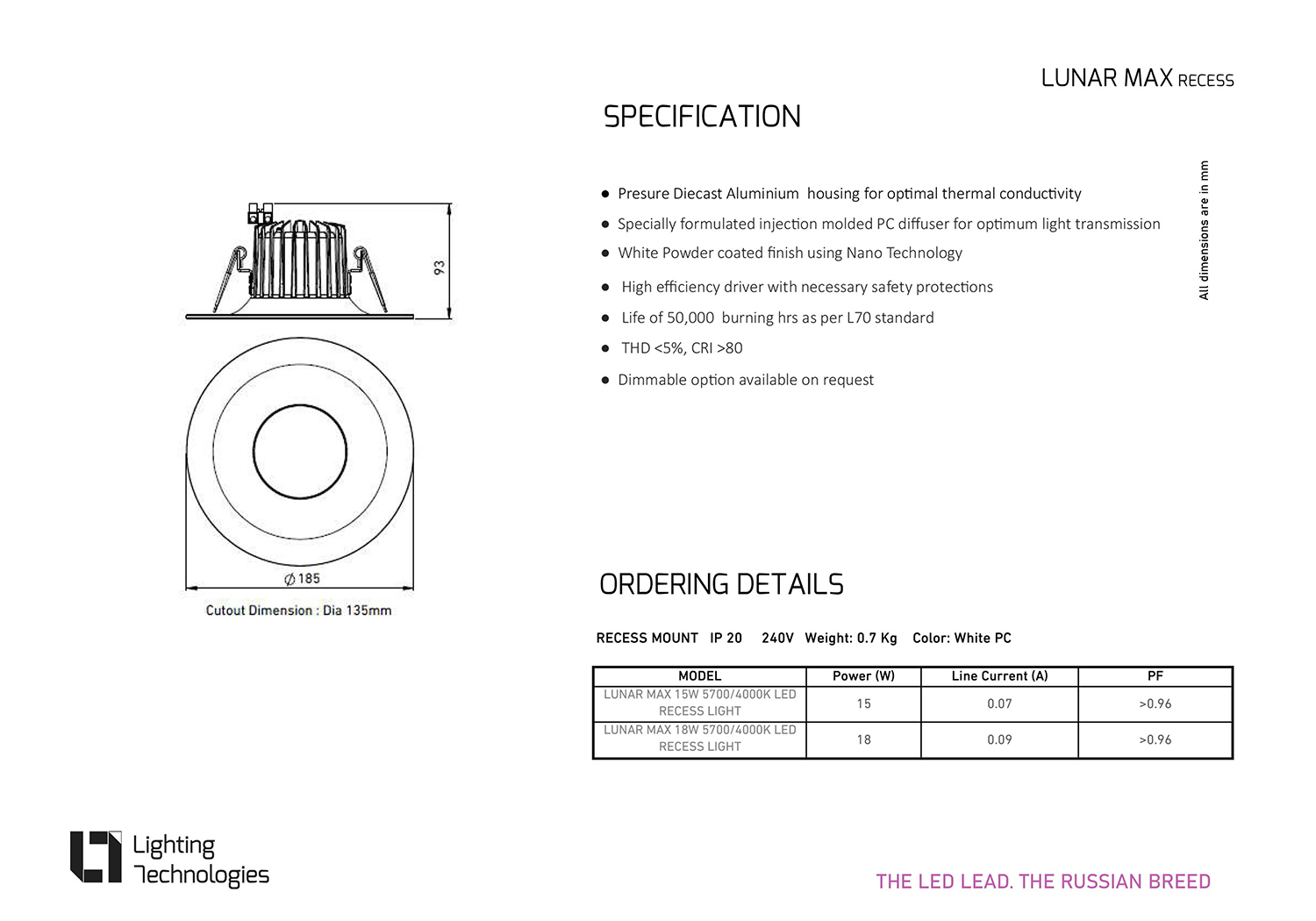 Lunar is uniquely designed LED Recessed Downlight with combined maximum visual comfort and optimum light output ratio